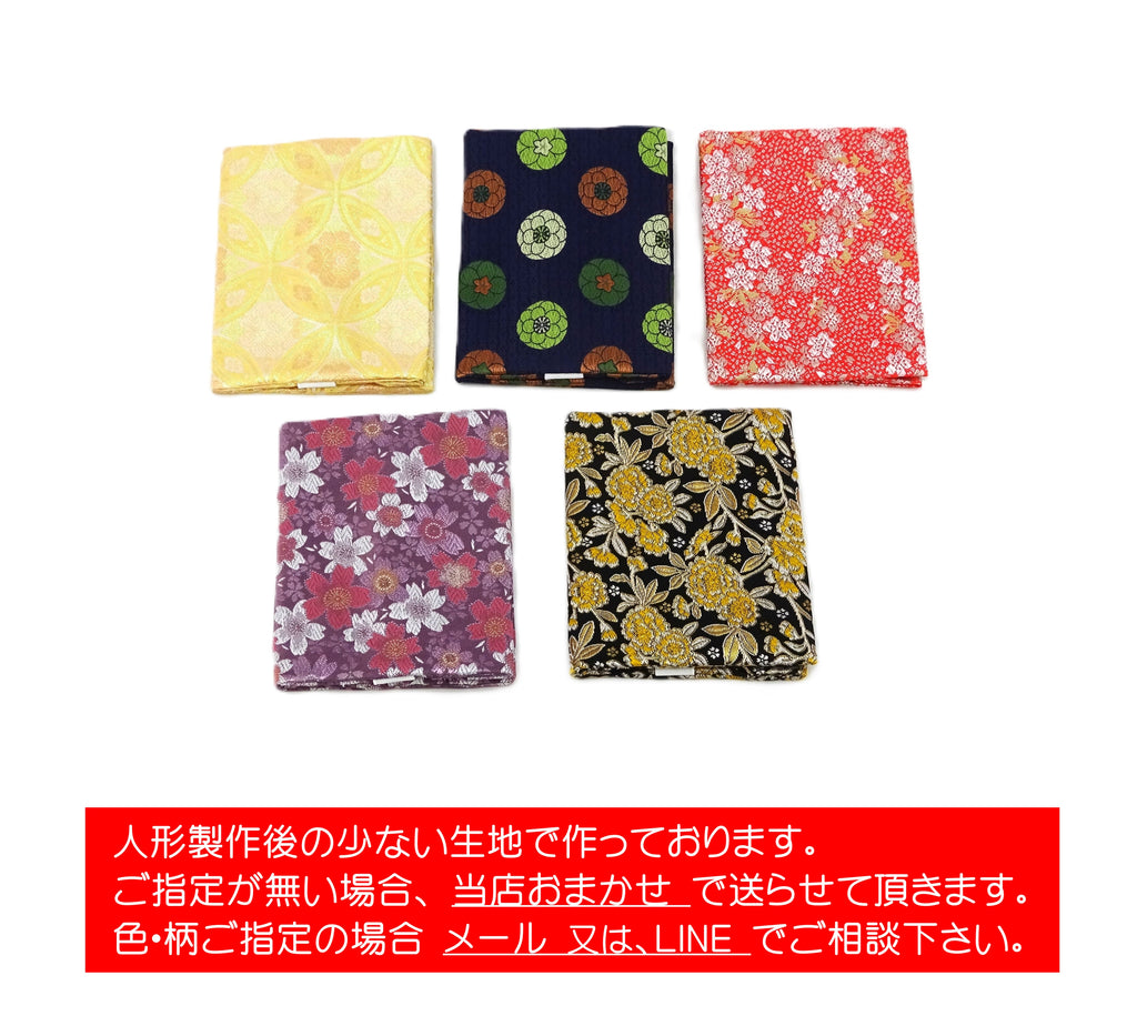 ※1)人形の作製後の少ない生地で作っております。ほぼ同じ色・柄などはありませんので、ご希望があれば当店のメール・LINEにてご相談下さい。